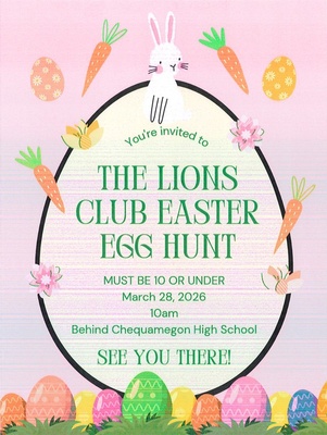 The Park Falls Lions Club be holding an Easter Egg Hunt on Saturday, March 28,2026. It will be for children 10 and younger behind the Park Falls High School, starting at 10 AM. We would love to see you there!