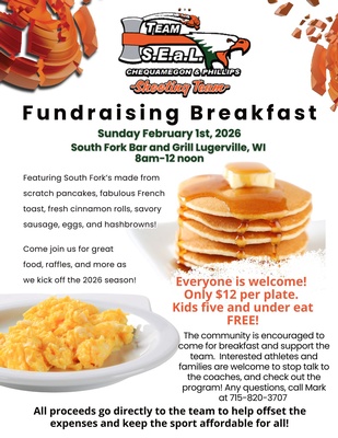 Come enjoy breakfast and support Team SEaL Shooting Team! Featuring South Fork's made from scratch pancakes, fabulous French toast, fresh cinnamon rolls, savory sausage, eggs, and hasbrowns! Join the team for great food, raffles, and more as they kick off the 2026 season!