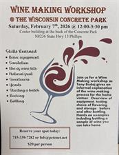 Join us for a Wine Making workshop as Tony Budaj gives an informal explanation of the wine making process for the home vintner. Overview of equipment, testing, choice of flavoring, and storage - before and after bottling. Hands on examples including bottling a sample of wine you can take home.